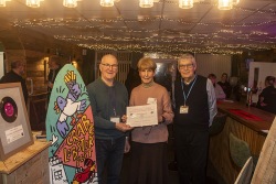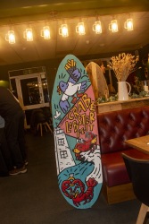 At the Friends Bistro to present the 2025 grant awards and allocate the surfboards for the 2026 Art Trail.